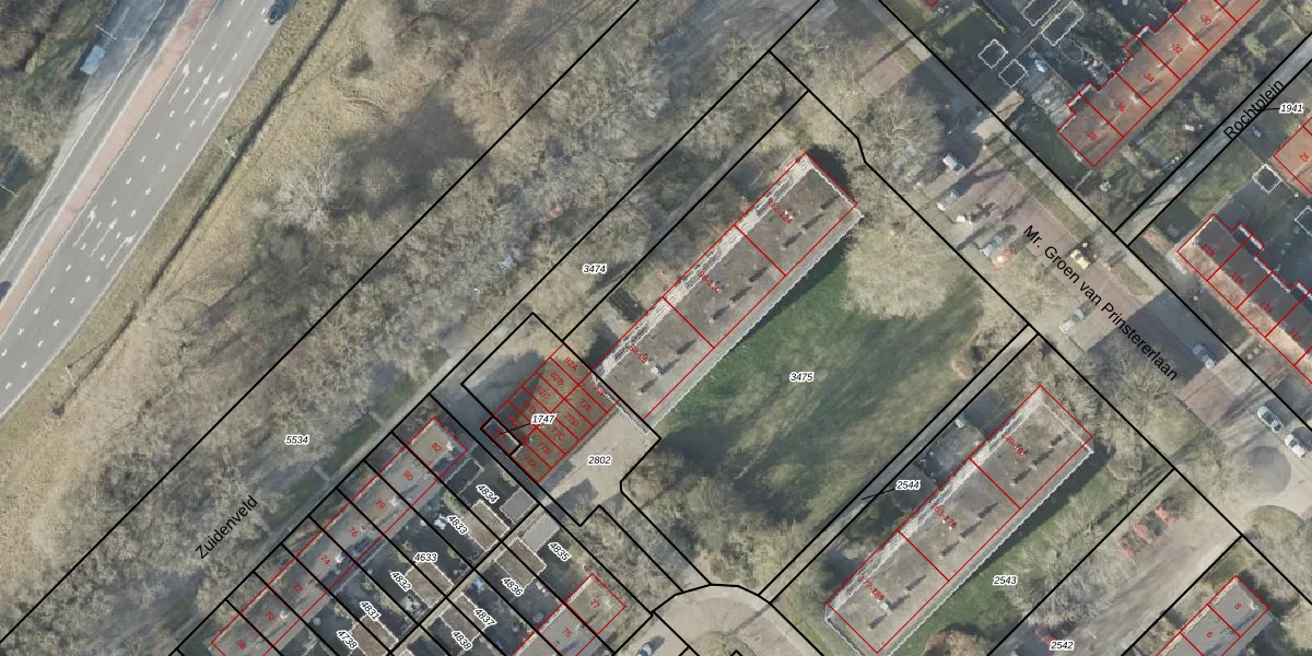 Het perceel waarop Zuidenveld 96 staat heeft een oppervlakte van 2806 m². Dit is een zeer groot perceel. De perceeloppervlakte wordt geregistreerd door het Kadaster. Gedetailleerde informatie over de maten van dit perceel kunt u vinden in het rapport Kadastrale kaart met maatvoering van Zuidenveld 96.