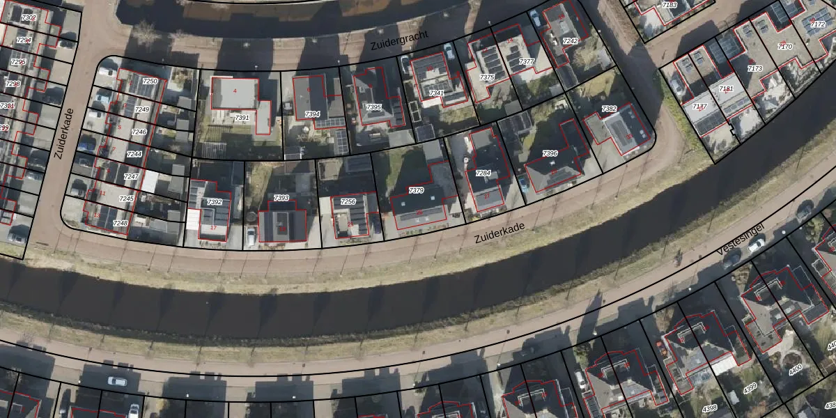 Het perceel waarop Zuiderkade 25 staat heeft een oppervlakte van 406 m². Dit is een groot perceel. De perceeloppervlakte wordt geregistreerd door het Kadaster. Gedetailleerde informatie over de maten van dit perceel kunt u vinden in het rapport Kadastrale kaart met maatvoering van Zuiderkade 25.