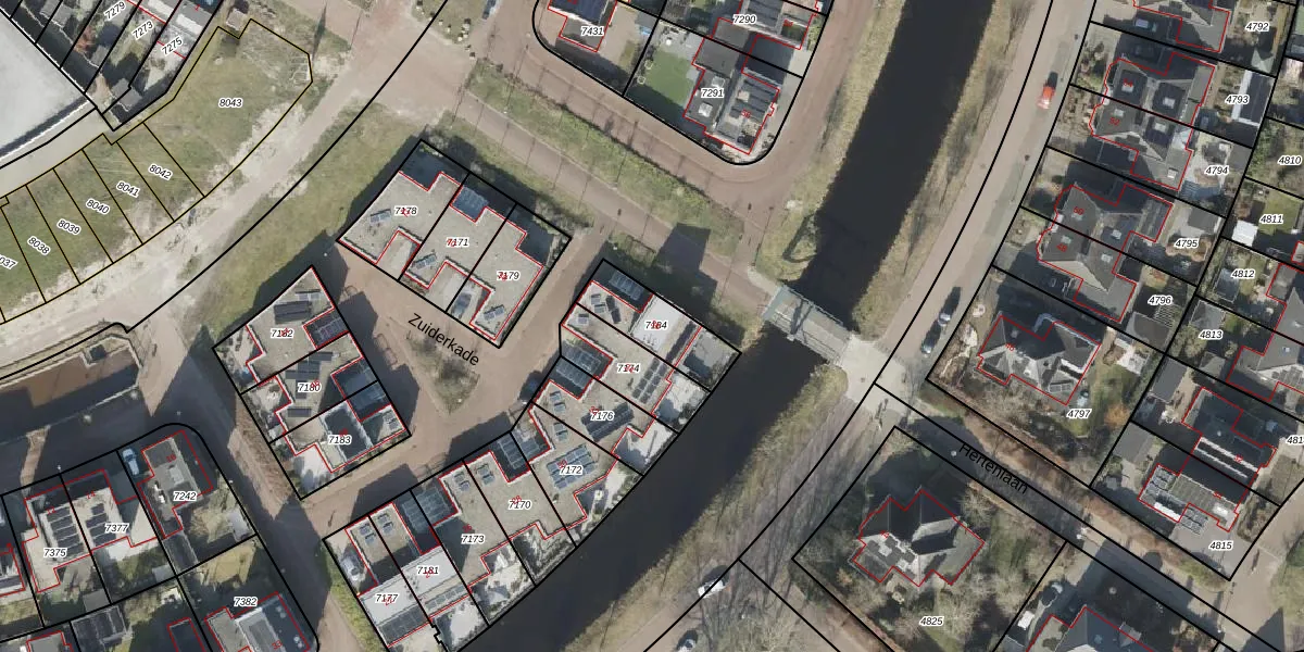 Het perceel waarop Zuiderkade 36 staat heeft een oppervlakte van 197 m². Dit is een middelgroot perceel. De perceeloppervlakte wordt geregistreerd door het Kadaster. Gedetailleerde informatie over de maten van dit perceel kunt u vinden in het rapport Kadastrale kaart met maatvoering van Zuiderkade 36.