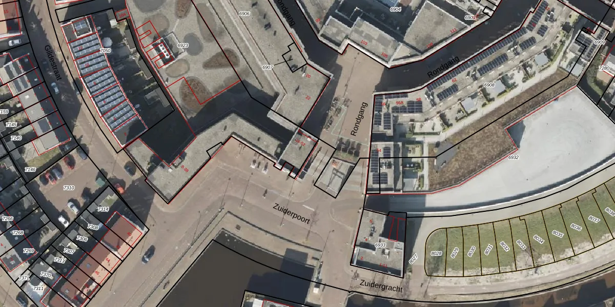 Het perceel waarop Zuiderpoort 38 staat heeft een oppervlakte van 3360 m². Dit is een zeer groot perceel. De perceeloppervlakte wordt geregistreerd door het Kadaster. Gedetailleerde informatie over de maten van dit perceel kunt u vinden in het rapport Kadastrale kaart met maatvoering van Zuiderpoort 38.
