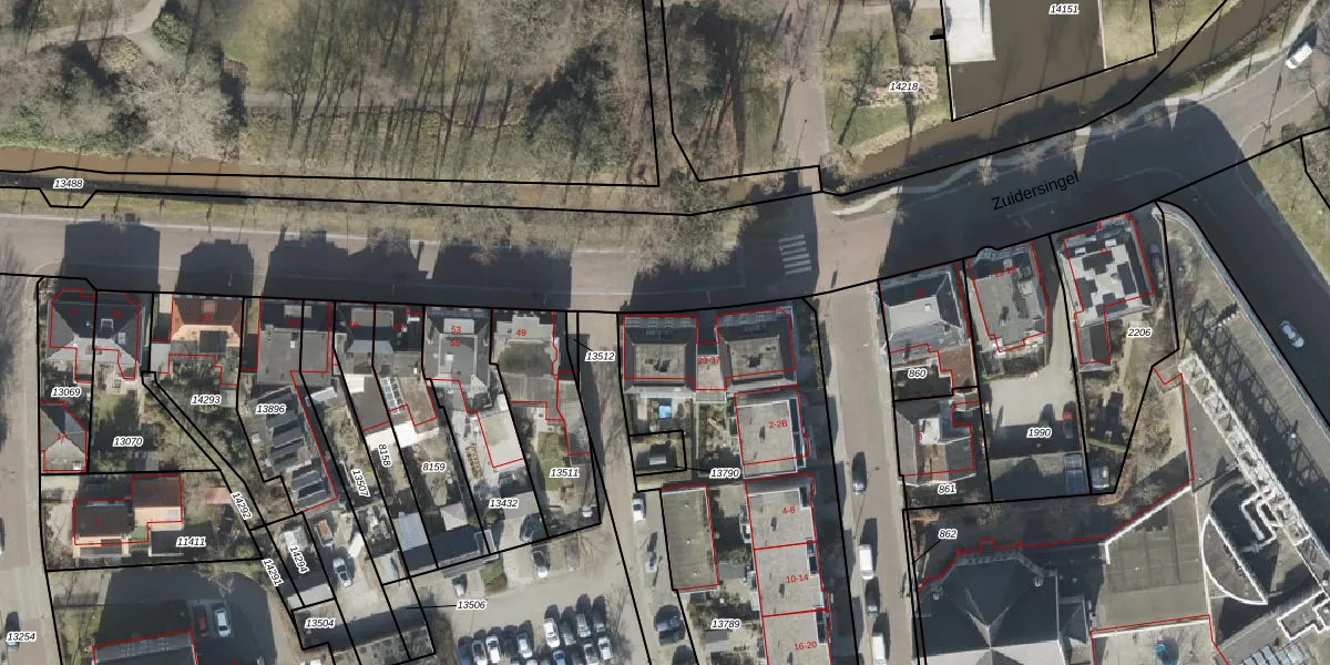 Het perceel waarop Zuidersingel 25 staat heeft een oppervlakte van 1800 m². Dit is een zeer groot perceel. De perceeloppervlakte wordt geregistreerd door het Kadaster. Gedetailleerde informatie over de maten van dit perceel kunt u vinden in het rapport Kadastrale kaart met maatvoering van Zuidersingel 25.