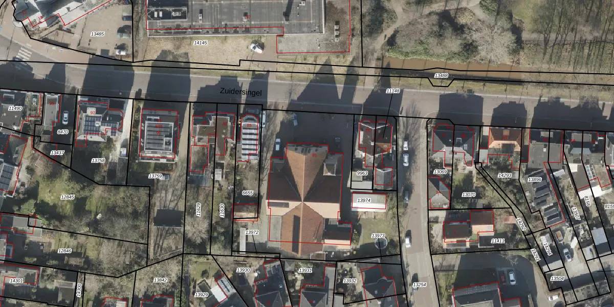 Het perceel waarop Zuidersingel 81 staat heeft een oppervlakte van 1883 m². Dit is een zeer groot perceel. De perceeloppervlakte wordt geregistreerd door het Kadaster. Gedetailleerde informatie over de maten van dit perceel kunt u vinden in het rapport Kadastrale kaart met maatvoering van Zuidersingel 81.