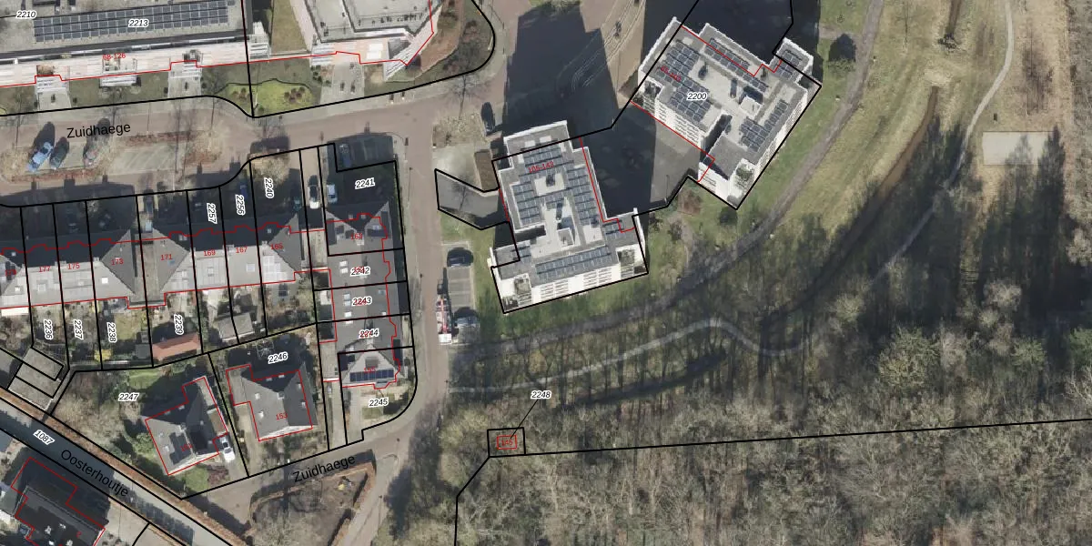 Het perceel waarop Zuidhaege 107 staat heeft een oppervlakte van 2347 m². Dit is een zeer groot perceel. De perceeloppervlakte wordt geregistreerd door het Kadaster. Gedetailleerde informatie over de maten van dit perceel kunt u vinden in het rapport Kadastrale kaart met maatvoering van Zuidhaege 107.