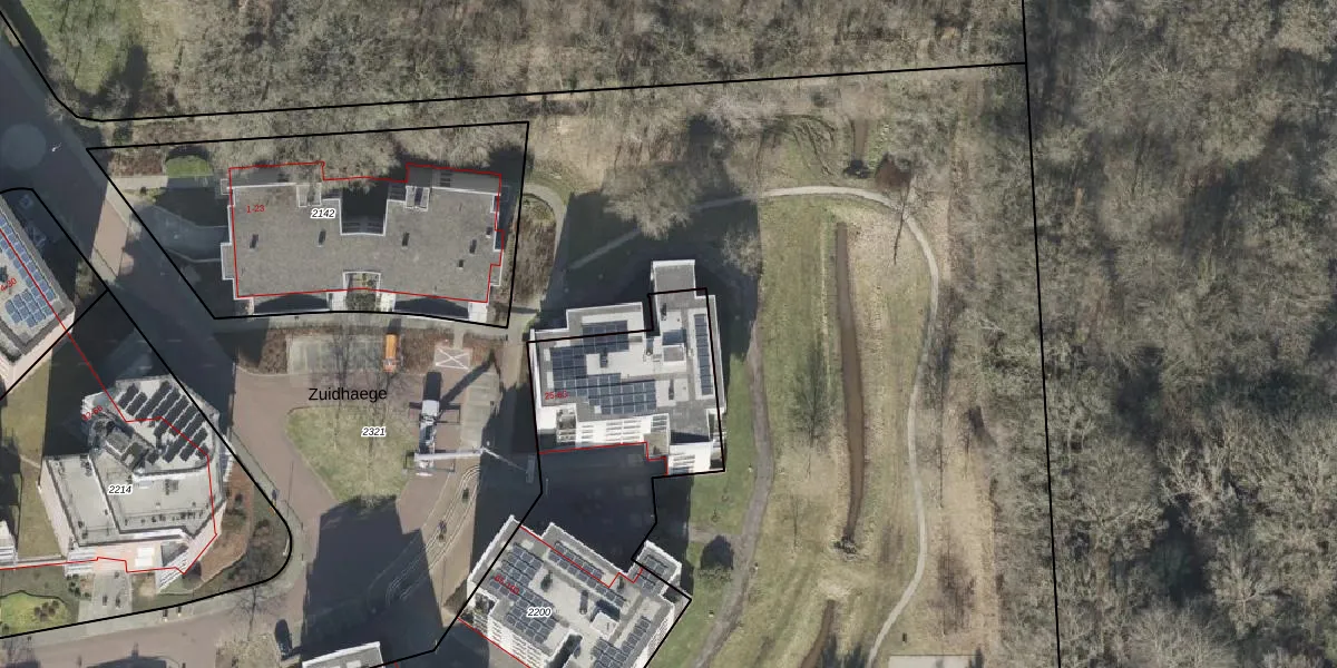 Het perceel waarop Zuidhaege 45 staat heeft een oppervlakte van 2347 m². Dit is een zeer groot perceel. De perceeloppervlakte wordt geregistreerd door het Kadaster. Gedetailleerde informatie over de maten van dit perceel kunt u vinden in het rapport Kadastrale kaart met maatvoering van Zuidhaege 45.