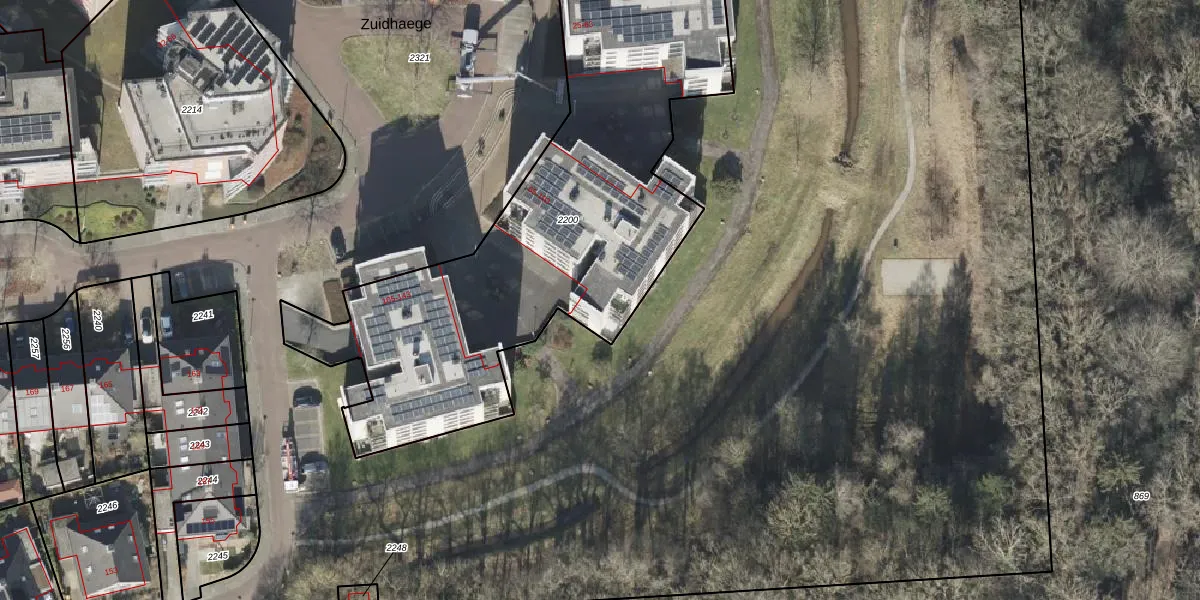 Het perceel waarop Zuidhaege 83 staat heeft een oppervlakte van 2347 m². Dit is een zeer groot perceel. De perceeloppervlakte wordt geregistreerd door het Kadaster. Gedetailleerde informatie over de maten van dit perceel kunt u vinden in het rapport Kadastrale kaart met maatvoering van Zuidhaege 83.