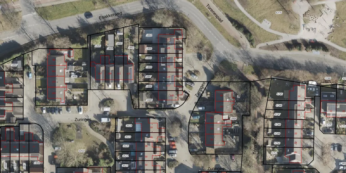 Gebruik de zoekbalk of klik op een perceel voor informatie over de adressen binnen dit perceel.