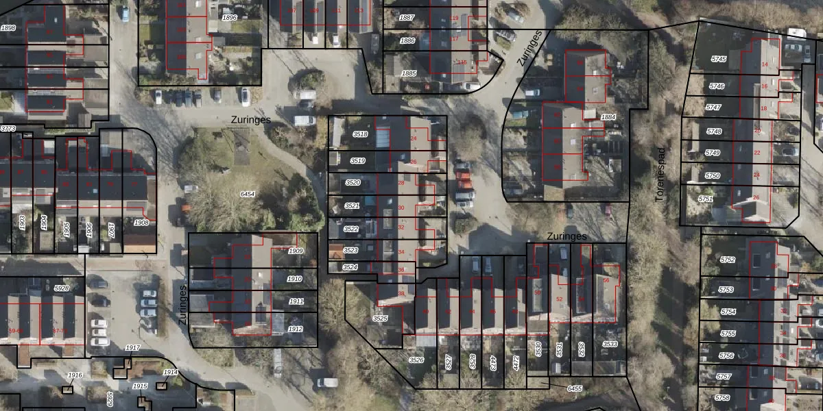 Gebruik de zoekbalk of klik op een perceel voor informatie over de adressen binnen dit perceel.