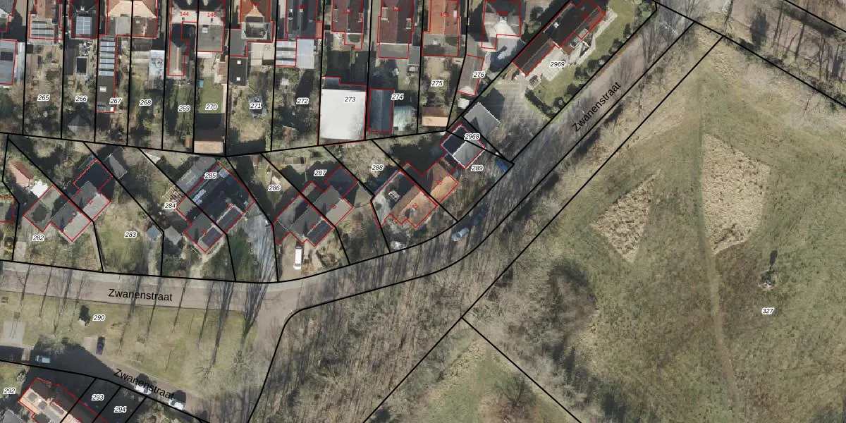 Gebruik de zoekbalk of klik op een perceel voor informatie over de adressen binnen dit perceel.