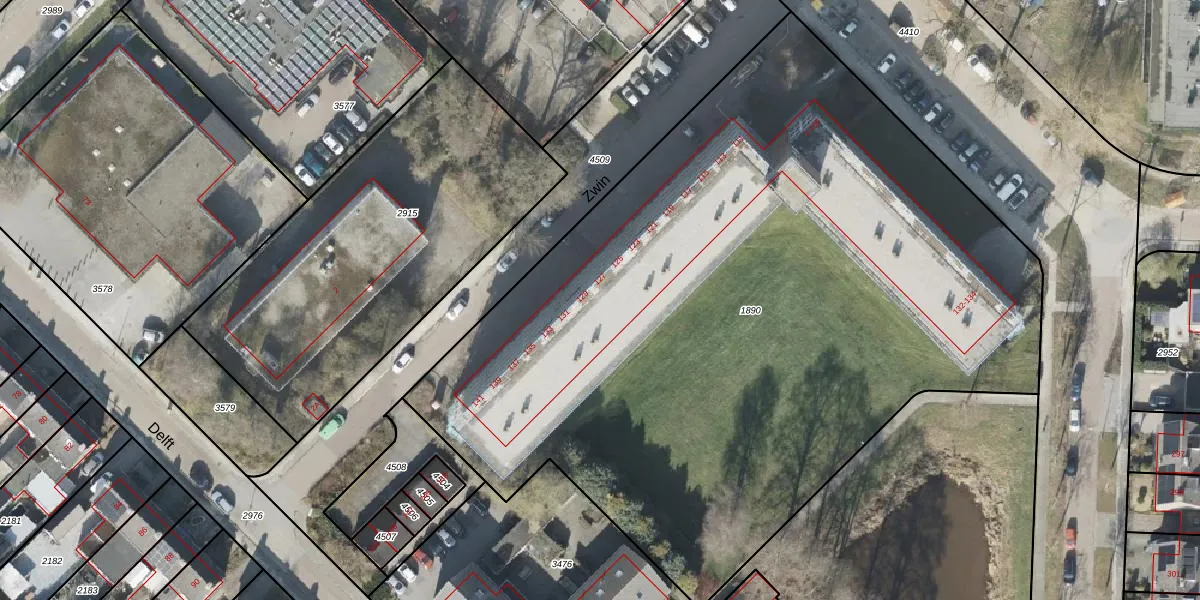Het perceel waarop Zwin 35 staat heeft een oppervlakte van 5325 m². Dit is een zeer groot perceel. De perceeloppervlakte wordt geregistreerd door het Kadaster. Gedetailleerde informatie over de maten van dit perceel kunt u vinden in het rapport Kadastrale kaart met maatvoering van Zwin 35.
