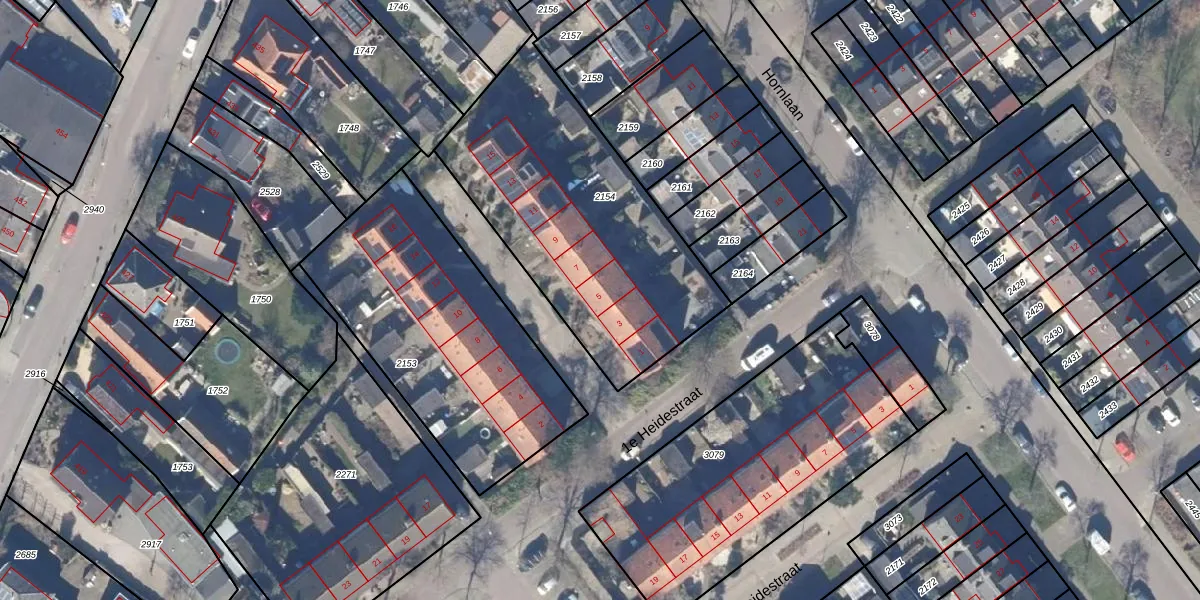 Het perceel waarop 1e Heidestraat 5 staat heeft een oppervlakte van 1264 m². Dit is een zeer groot perceel. De perceeloppervlakte wordt geregistreerd door het Kadaster. Gedetailleerde informatie over de maten van dit perceel kunt u vinden in het rapport Kadastrale kaart met maatvoering van 1e Heidestraat 5.