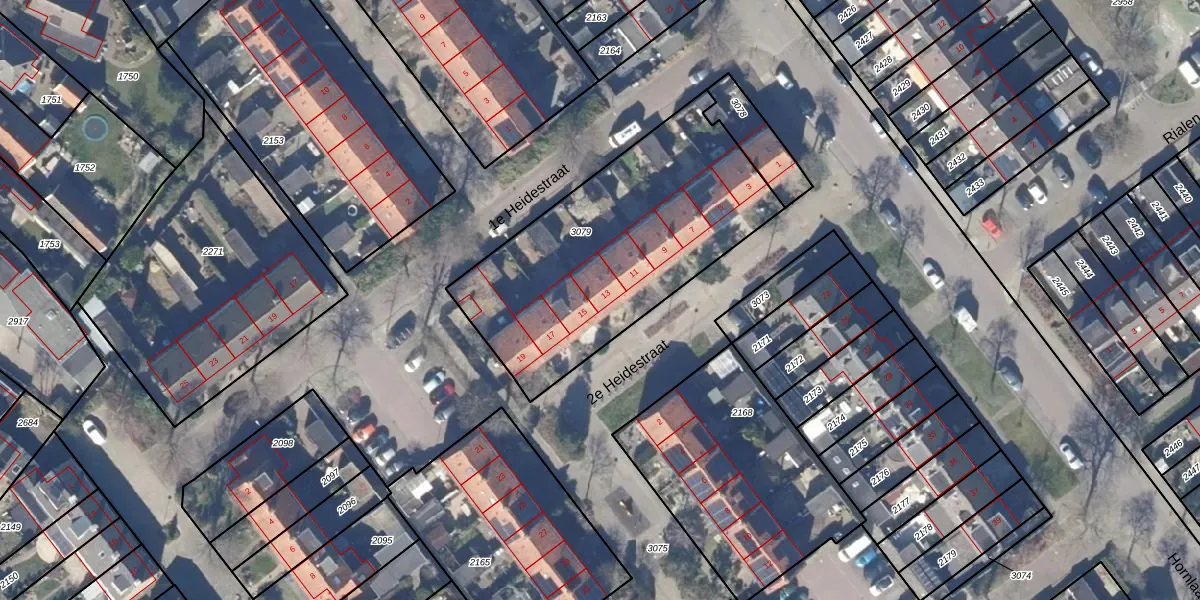2e Heidestraat 13 is gelegen op kadastraal perceel ASD01C3079. Deze kadastrale aanduiding is uniek en wordt gebruikt door het Kadaster om eigendomsrechten en andere zakelijke rechten vast te leggen. Het perceel maakt onderdeel uit van de kadastrale gemeente Assendelft.