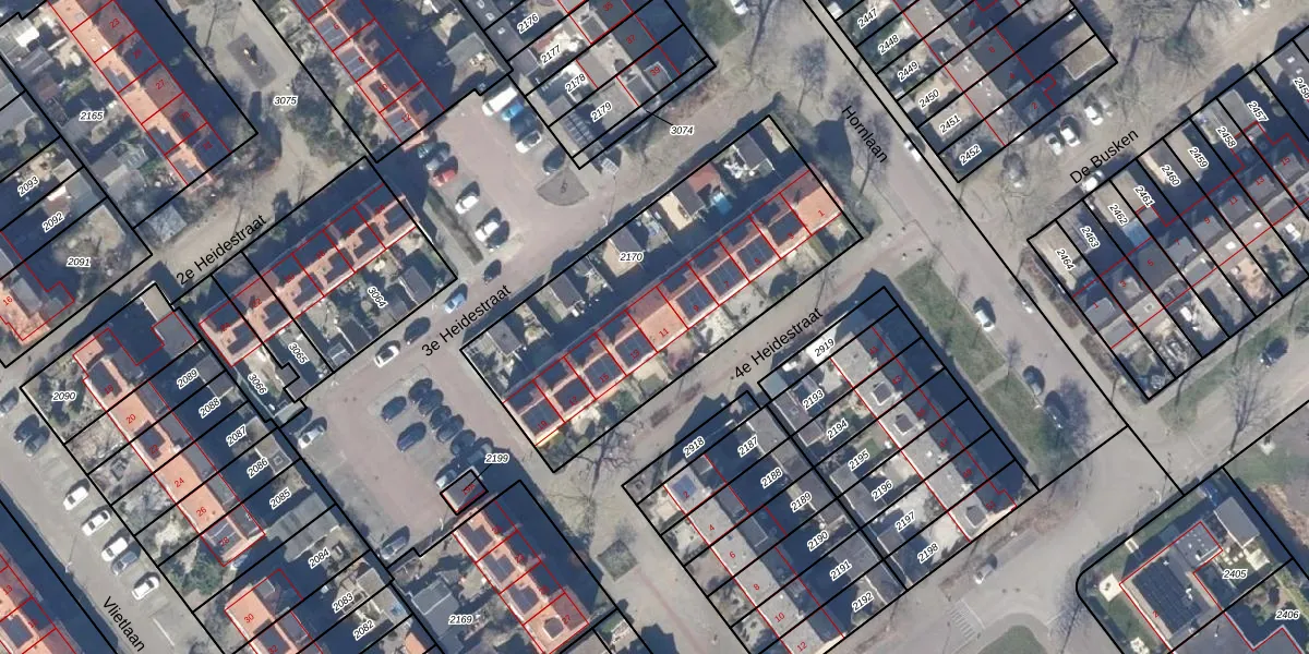 Het perceel waarop 4e Heidestraat 11 staat heeft een oppervlakte van 1392 m². Dit is een zeer groot perceel. De perceeloppervlakte wordt geregistreerd door het Kadaster. Gedetailleerde informatie over de maten van dit perceel kunt u vinden in het rapport Kadastrale kaart met maatvoering van 4e Heidestraat 11.