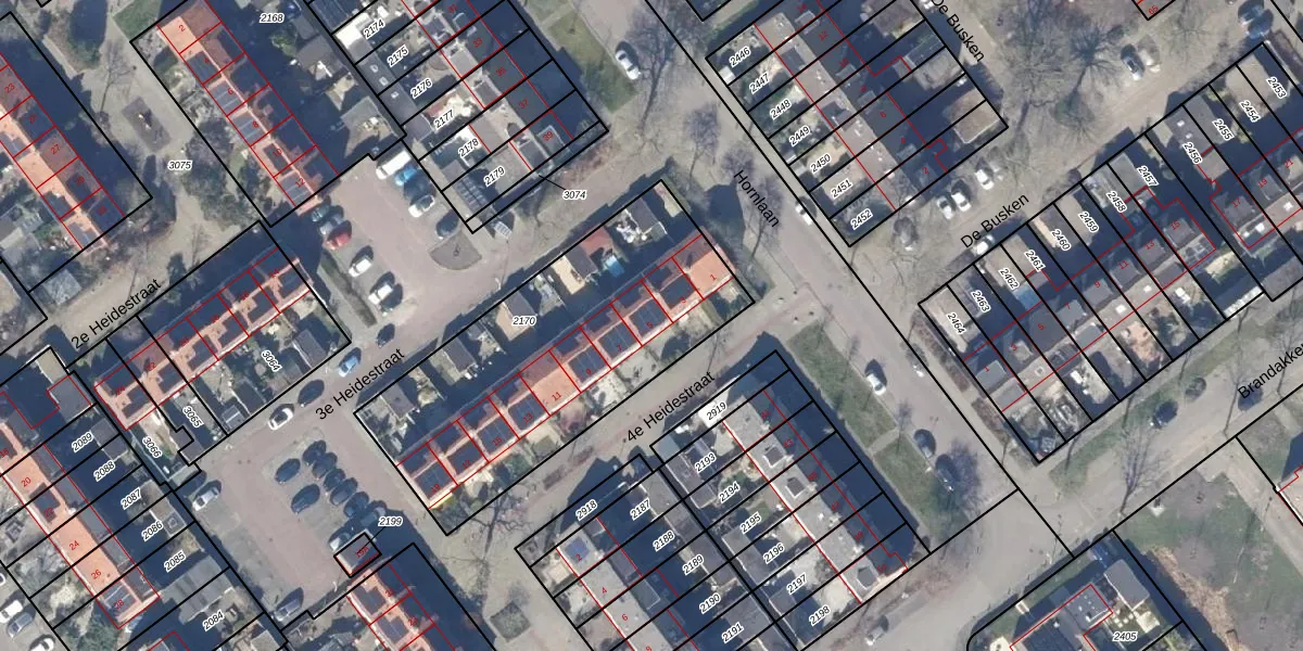 Het perceel waarop 4e Heidestraat 5 staat heeft een oppervlakte van 1392 m². Dit is een zeer groot perceel. De perceeloppervlakte wordt geregistreerd door het Kadaster. Gedetailleerde informatie over de maten van dit perceel kunt u vinden in het rapport Kadastrale kaart met maatvoering van 4e Heidestraat 5.