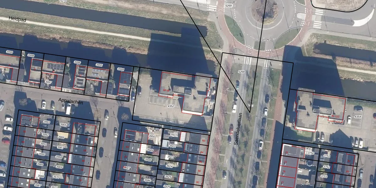 Het perceel waarop Appalachen 32 staat heeft een oppervlakte van 1210 m². Dit is een zeer groot perceel. De perceeloppervlakte wordt geregistreerd door het Kadaster. Gedetailleerde informatie over de maten van dit perceel kunt u vinden in het rapport Kadastrale kaart met maatvoering van Appalachen 32.