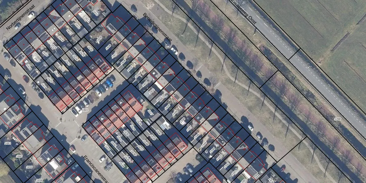 Benedictijnenstraat 42 is gelegen op kadastraal perceel ASD01O1600. Deze kadastrale aanduiding is uniek en wordt gebruikt door het Kadaster om eigendomsrechten en andere zakelijke rechten vast te leggen. Het perceel maakt onderdeel uit van de kadastrale gemeente Assendelft.
