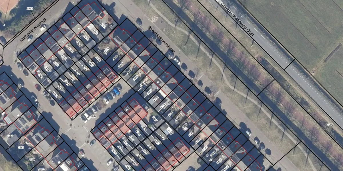 Benedictijnenstraat 46 is gelegen op kadastraal perceel ASD01O1602. Deze kadastrale aanduiding is uniek en wordt gebruikt door het Kadaster om eigendomsrechten en andere zakelijke rechten vast te leggen. Het perceel maakt onderdeel uit van de kadastrale gemeente Assendelft.
