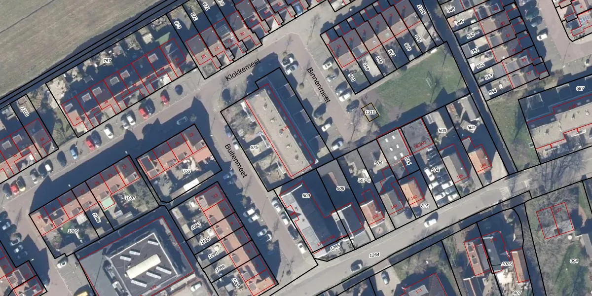 Het perceel waarop Binnenmeet 14 staat heeft een oppervlakte van 833 m². Dit is een groot perceel. De perceeloppervlakte wordt geregistreerd door het Kadaster. Gedetailleerde informatie over de maten van dit perceel kunt u vinden in het rapport Kadastrale kaart met maatvoering van Binnenmeet 14.