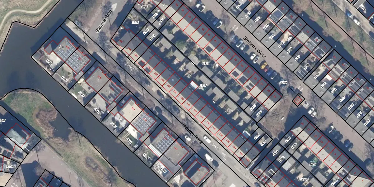 Het perceel waarop Blauwe Ring 150 staat heeft een oppervlakte van 1568 m². Dit is een zeer groot perceel. De perceeloppervlakte wordt geregistreerd door het Kadaster. Gedetailleerde informatie over de maten van dit perceel kunt u vinden in het rapport Kadastrale kaart met maatvoering van Blauwe Ring 150.