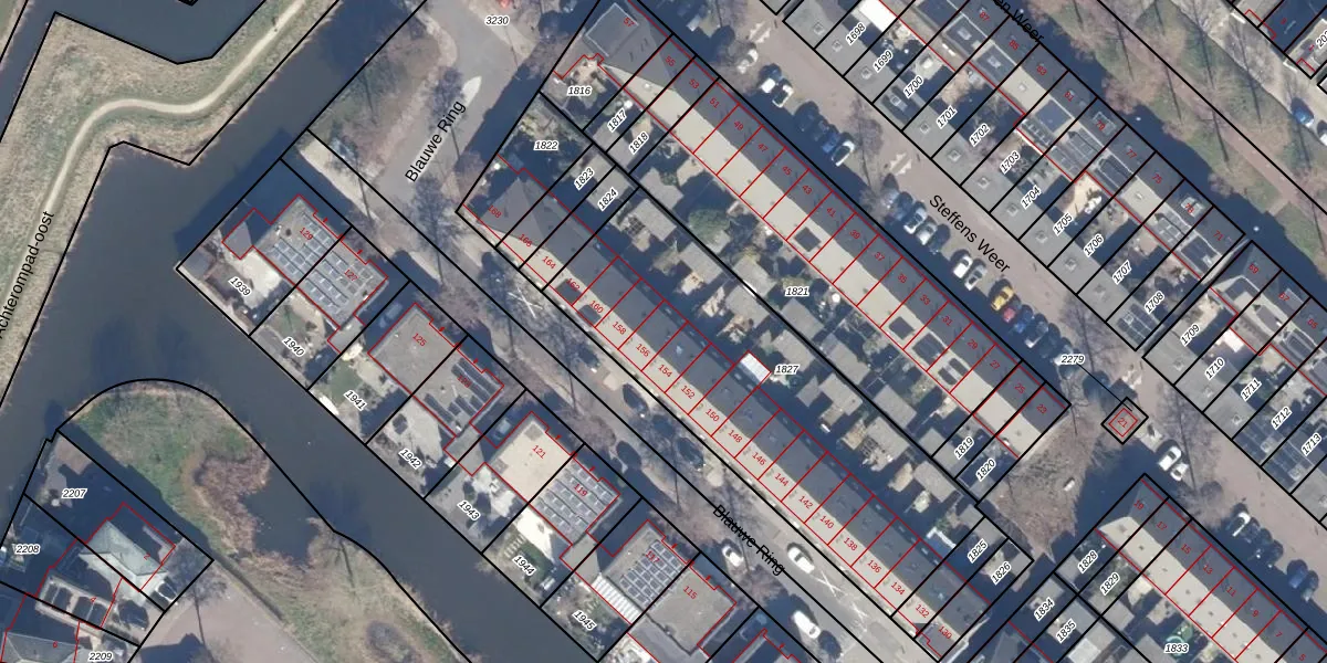 Het perceel waarop Blauwe Ring 156 staat heeft een oppervlakte van 1568 m². Dit is een zeer groot perceel. De perceeloppervlakte wordt geregistreerd door het Kadaster. Gedetailleerde informatie over de maten van dit perceel kunt u vinden in het rapport Kadastrale kaart met maatvoering van Blauwe Ring 156.