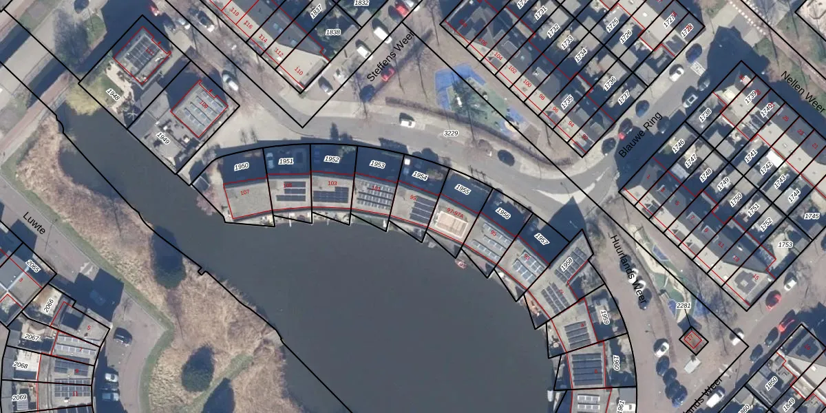 Het perceel waarop Blauwe Ring 99 staat heeft een oppervlakte van 187 m². Dit is een middelgroot perceel. De perceeloppervlakte wordt geregistreerd door het Kadaster. Gedetailleerde informatie over de maten van dit perceel kunt u vinden in het rapport Kadastrale kaart met maatvoering van Blauwe Ring 99.