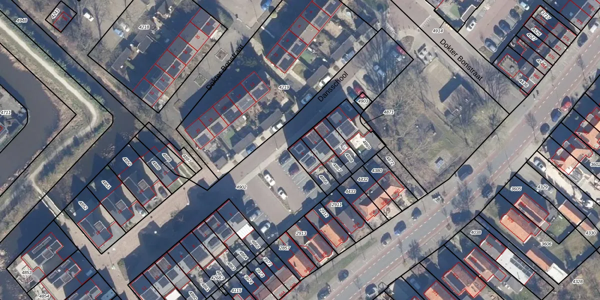 Gebruik de zoekbalk of klik op een perceel voor informatie over de adressen binnen dit perceel.