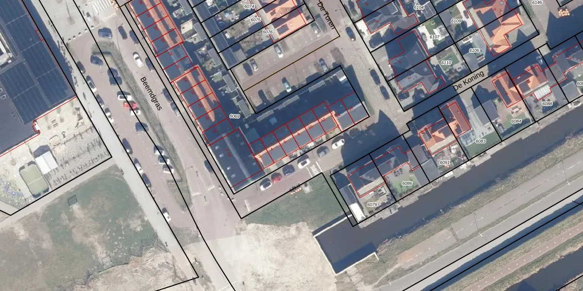 De Koning 6 is gelegen op kadastraal perceel ASD01N6069. Deze kadastrale aanduiding is uniek en wordt gebruikt door het Kadaster om eigendomsrechten en andere zakelijke rechten vast te leggen. Het perceel maakt onderdeel uit van de kadastrale gemeente Assendelft.