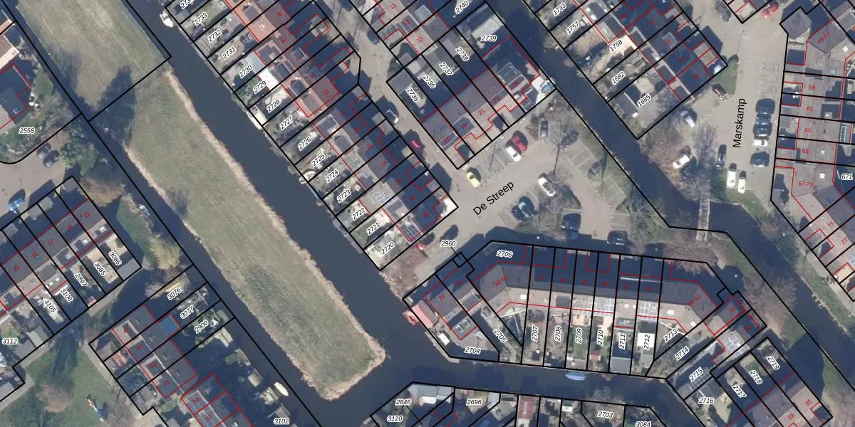 De Streep 30 is gelegen op kadastraal perceel ASD01C2720. Deze kadastrale aanduiding is uniek en wordt gebruikt door het Kadaster om eigendomsrechten en andere zakelijke rechten vast te leggen. Het perceel maakt onderdeel uit van de kadastrale gemeente Assendelft.