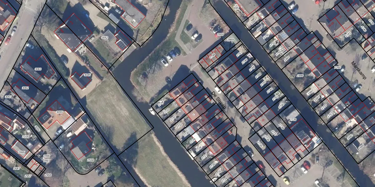 Gebruik de zoekbalk of klik op een perceel voor informatie over de adressen binnen dit perceel.