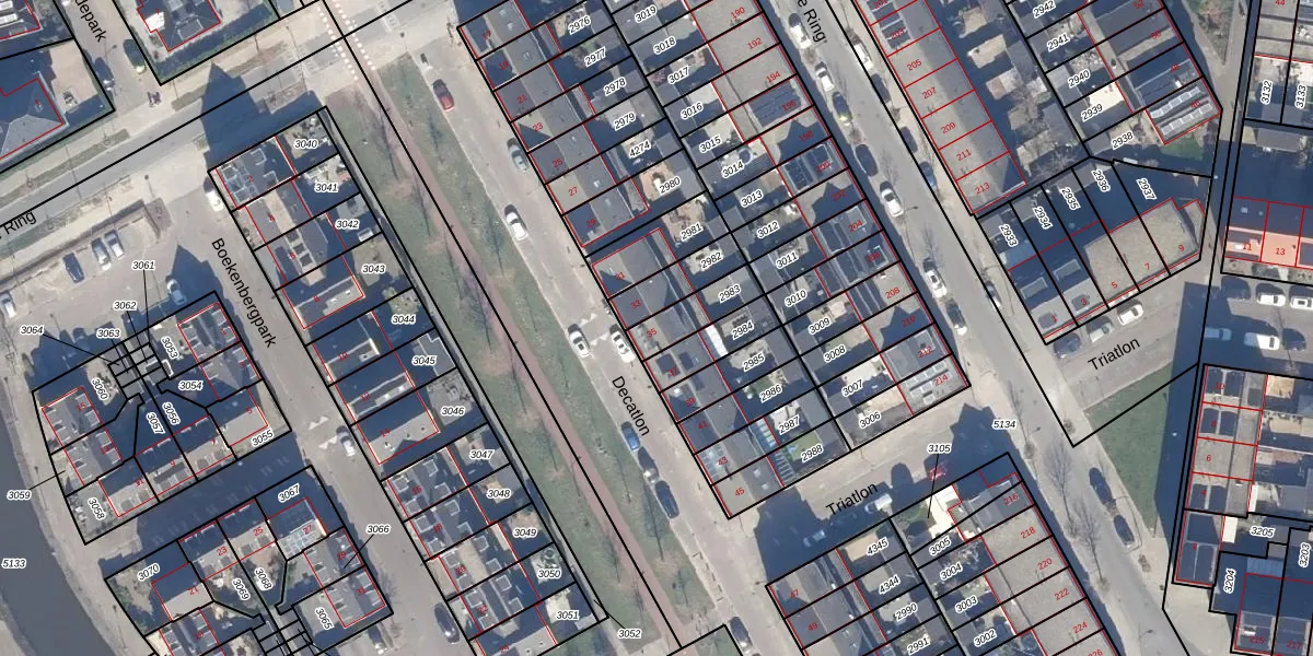 Gebruik de zoekbalk of klik op een perceel voor informatie over de adressen binnen dit perceel.