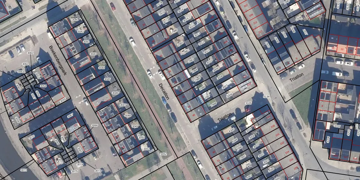 Gebruik de zoekbalk of klik op een perceel voor informatie over de adressen binnen dit perceel.