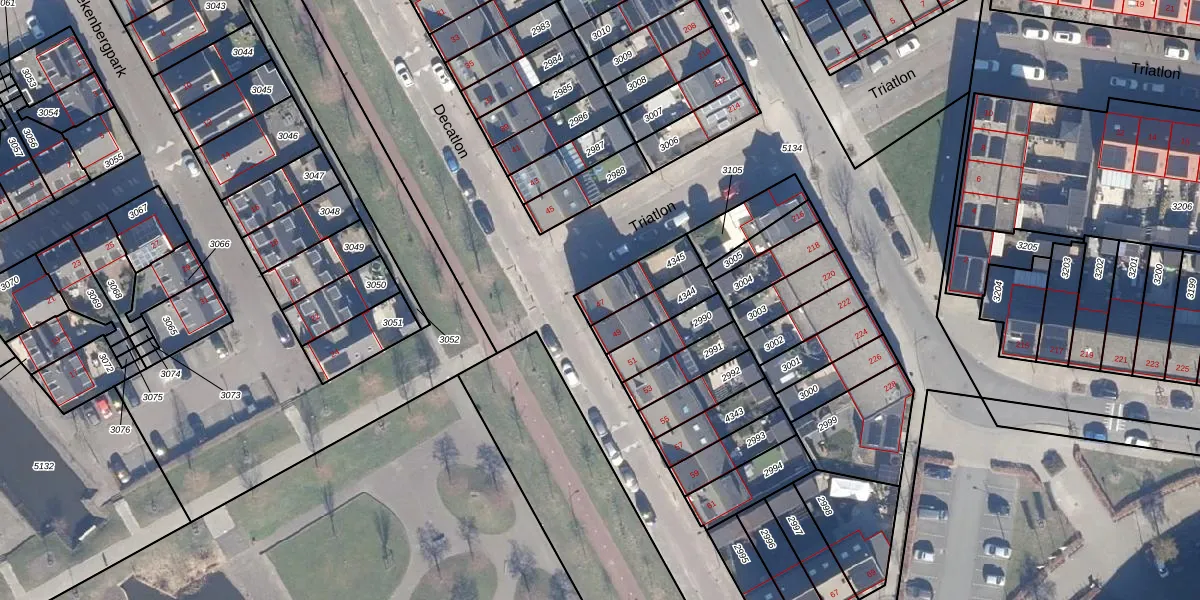 Gebruik de zoekbalk of klik op een perceel voor informatie over de adressen binnen dit perceel.