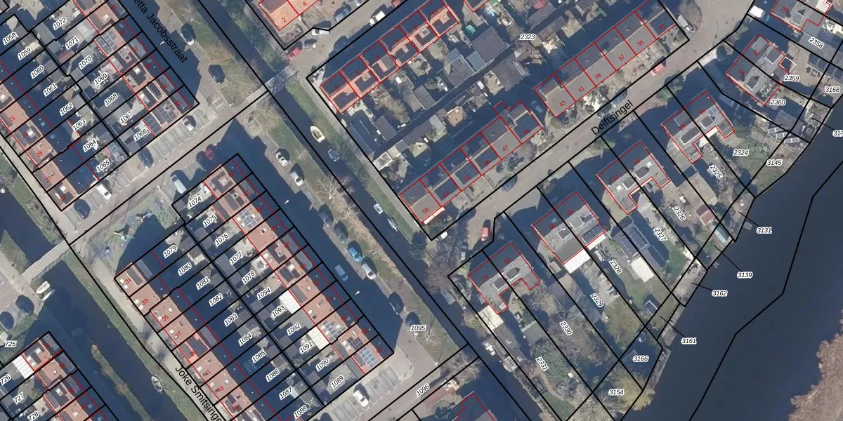 Het perceel waarop Delftsingel 55 staat heeft een oppervlakte van 3741 m². Dit is een zeer groot perceel. De perceeloppervlakte wordt geregistreerd door het Kadaster. Gedetailleerde informatie over de maten van dit perceel kunt u vinden in het rapport Kadastrale kaart met maatvoering van Delftsingel 55.