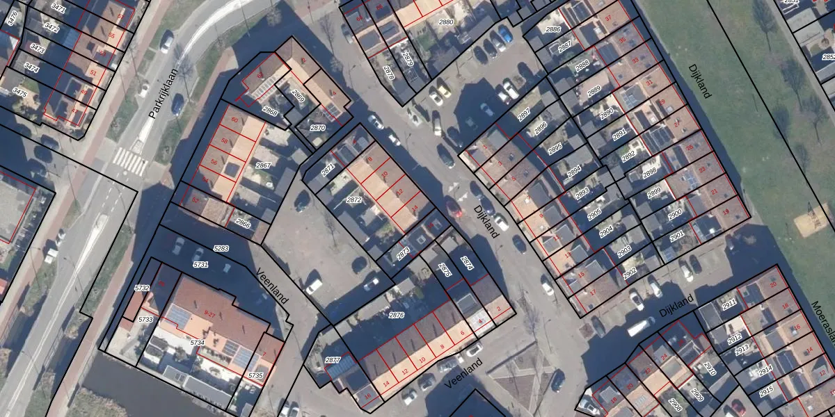 Het perceel waarop Dijkland 14 staat heeft een oppervlakte van 424 m². Dit is een groot perceel. De perceeloppervlakte wordt geregistreerd door het Kadaster. Gedetailleerde informatie over de maten van dit perceel kunt u vinden in het rapport Kadastrale kaart met maatvoering van Dijkland 14.