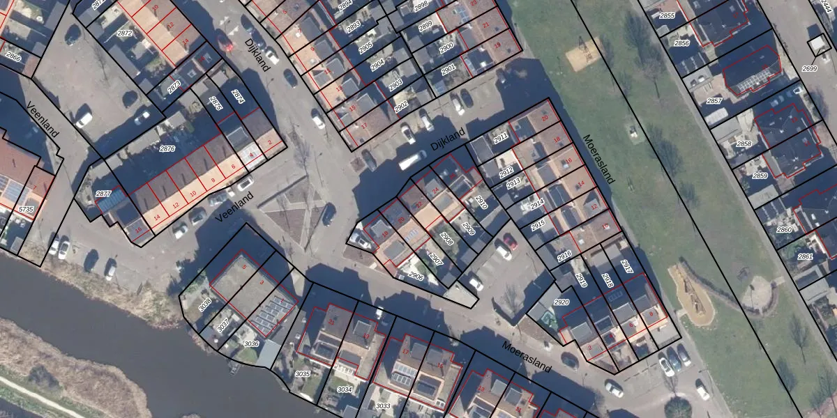 Het perceel waarop Dijkland 22 staat heeft een oppervlakte van 132 m². Dit is een middelgroot perceel. De perceeloppervlakte wordt geregistreerd door het Kadaster. Gedetailleerde informatie over de maten van dit perceel kunt u vinden in het rapport Kadastrale kaart met maatvoering van Dijkland 22.
