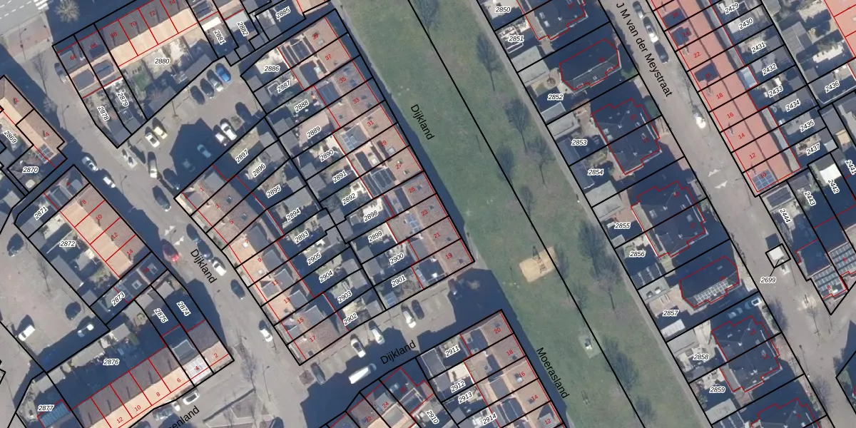 Het perceel waarop Dijkland 23 staat heeft een oppervlakte van 141 m². Dit is een middelgroot perceel. De perceeloppervlakte wordt geregistreerd door het Kadaster. Gedetailleerde informatie over de maten van dit perceel kunt u vinden in het rapport Kadastrale kaart met maatvoering van Dijkland 23.
