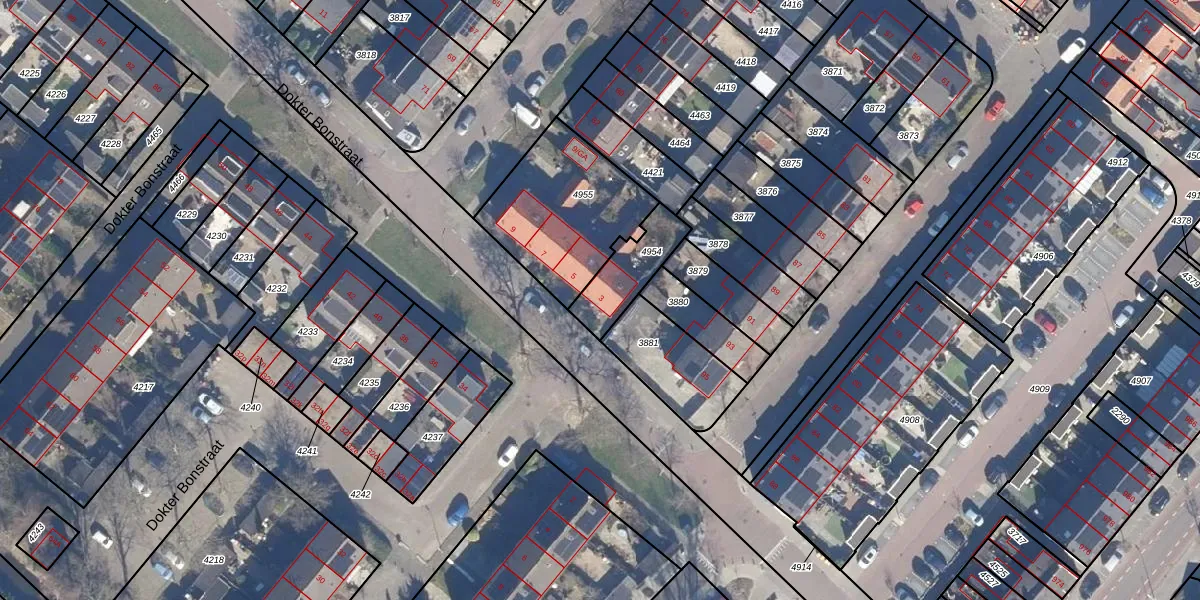 Dokter Bonstraat 3 is gelegen op kadastraal perceel ASD01A4954. Deze kadastrale aanduiding is uniek en wordt gebruikt door het Kadaster om eigendomsrechten en andere zakelijke rechten vast te leggen. Het perceel maakt onderdeel uit van de kadastrale gemeente Assendelft.