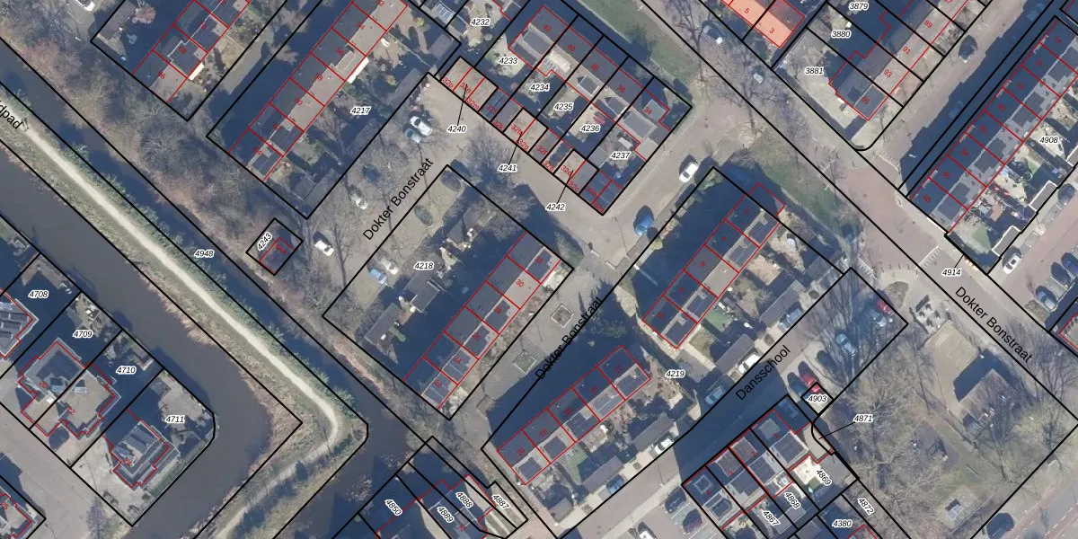 Dokter Bonstraat 32 is gelegen op kadastraal perceel ASD01A4218. Deze kadastrale aanduiding is uniek en wordt gebruikt door het Kadaster om eigendomsrechten en andere zakelijke rechten vast te leggen. Het perceel maakt onderdeel uit van de kadastrale gemeente Assendelft.