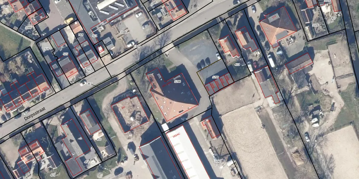 Het perceel waarop Dorpsstraat 163-a staat heeft een oppervlakte van 1593 m². Dit is een zeer groot perceel. De perceeloppervlakte wordt geregistreerd door het Kadaster. Gedetailleerde informatie over de maten van dit perceel kunt u vinden in het rapport Kadastrale kaart met maatvoering van Dorpsstraat 163-a.