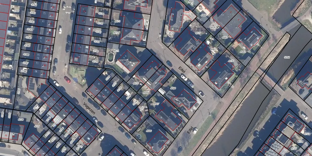 Het perceel waarop Eifel 7 staat heeft een oppervlakte van 225 m². Dit is een middelgroot perceel. De perceeloppervlakte wordt geregistreerd door het Kadaster. Gedetailleerde informatie over de maten van dit perceel kunt u vinden in het rapport Kadastrale kaart met maatvoering van Eifel 7.