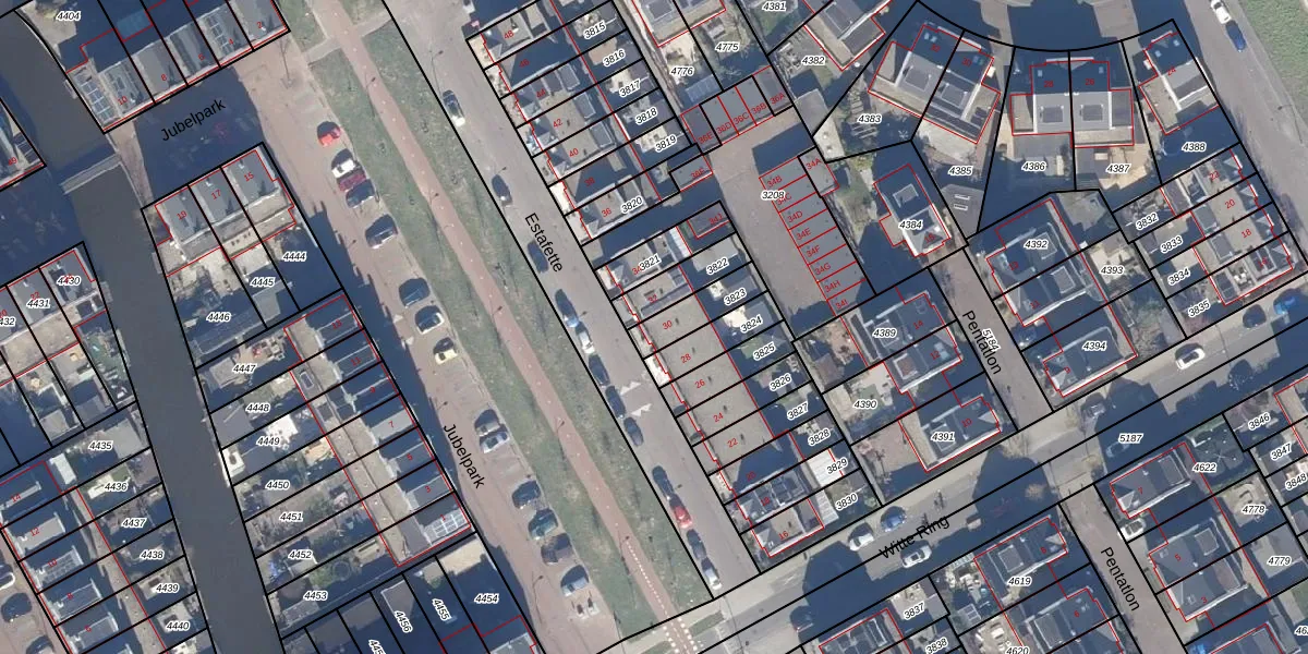 Het perceel waarop Estafette 30 staat heeft een oppervlakte van 112 m². Dit is een middelgroot perceel. De perceeloppervlakte wordt geregistreerd door het Kadaster. Gedetailleerde informatie over de maten van dit perceel kunt u vinden in het rapport Kadastrale kaart met maatvoering van Estafette 30.