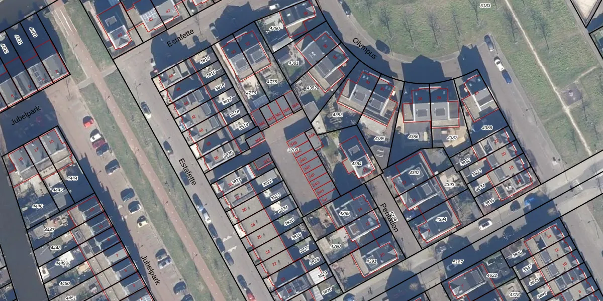 Het perceel waarop Estafette 34-C staat heeft een oppervlakte van 630 m². Dit is een groot perceel. De perceeloppervlakte wordt geregistreerd door het Kadaster. Gedetailleerde informatie over de maten van dit perceel kunt u vinden in het rapport Kadastrale kaart met maatvoering van Estafette 34-C.