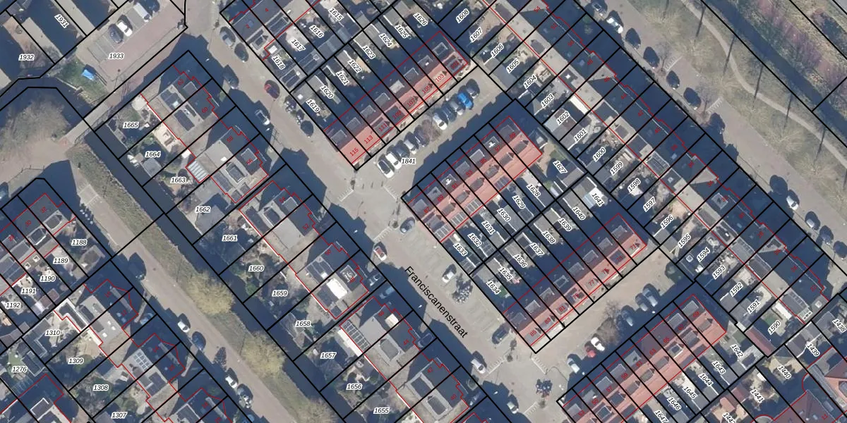 Het perceel waarop Franciscanenstraat 87 staat heeft een oppervlakte van 115 m². Dit is een middelgroot perceel. De perceeloppervlakte wordt geregistreerd door het Kadaster. Gedetailleerde informatie over de maten van dit perceel kunt u vinden in het rapport Kadastrale kaart met maatvoering van Franciscanenstraat 87.