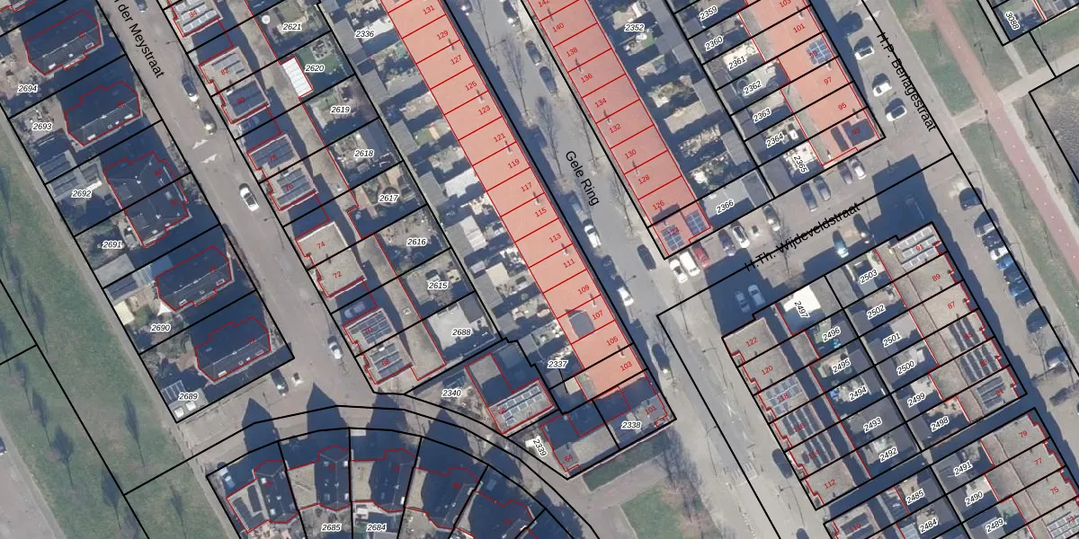 Het perceel waarop Gele Ring 111 staat heeft een oppervlakte van 2356 m². Dit is een zeer groot perceel. De perceeloppervlakte wordt geregistreerd door het Kadaster. Gedetailleerde informatie over de maten van dit perceel kunt u vinden in het rapport Kadastrale kaart met maatvoering van Gele Ring 111.