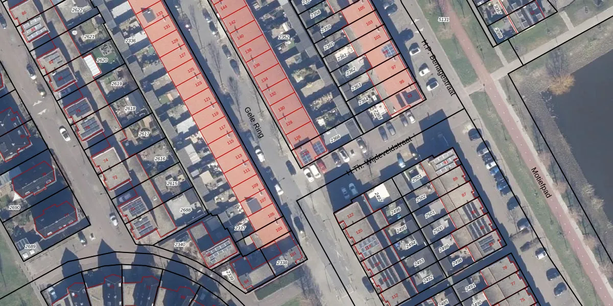 Gebruik de zoekbalk of klik op een perceel voor informatie over de adressen binnen dit perceel.