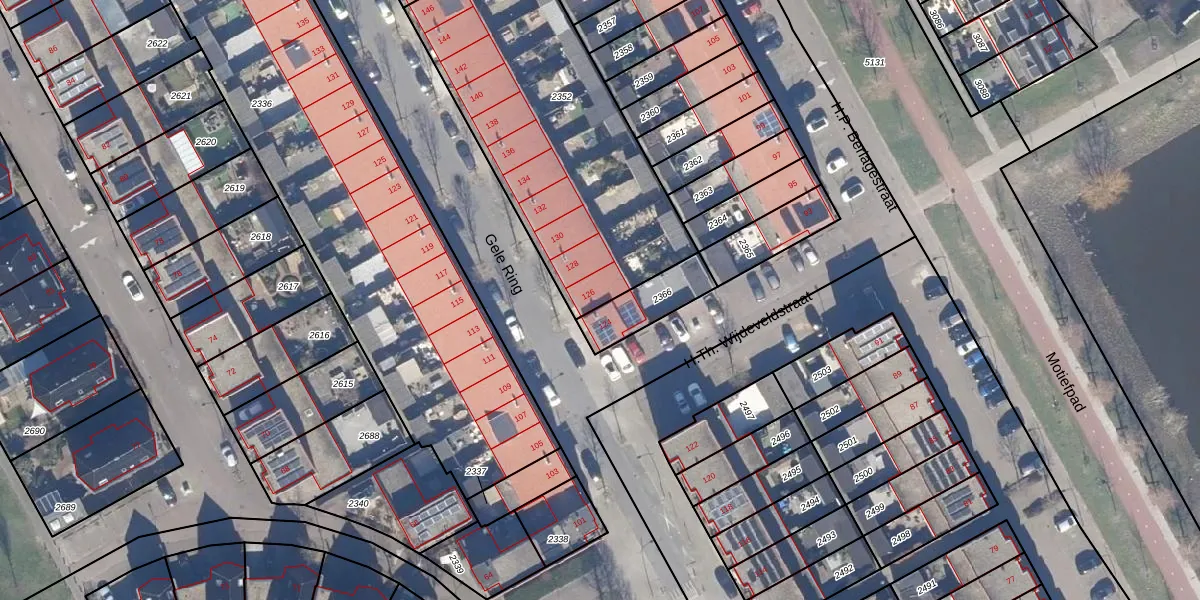 Het perceel waarop Gele Ring 126 staat heeft een oppervlakte van 1386 m². Dit is een zeer groot perceel. De perceeloppervlakte wordt geregistreerd door het Kadaster. Gedetailleerde informatie over de maten van dit perceel kunt u vinden in het rapport Kadastrale kaart met maatvoering van Gele Ring 126.