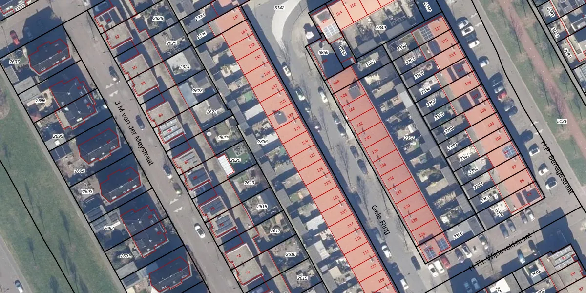 Het perceel waarop Gele Ring 129 staat heeft een oppervlakte van 2356 m². Dit is een zeer groot perceel. De perceeloppervlakte wordt geregistreerd door het Kadaster. Gedetailleerde informatie over de maten van dit perceel kunt u vinden in het rapport Kadastrale kaart met maatvoering van Gele Ring 129.