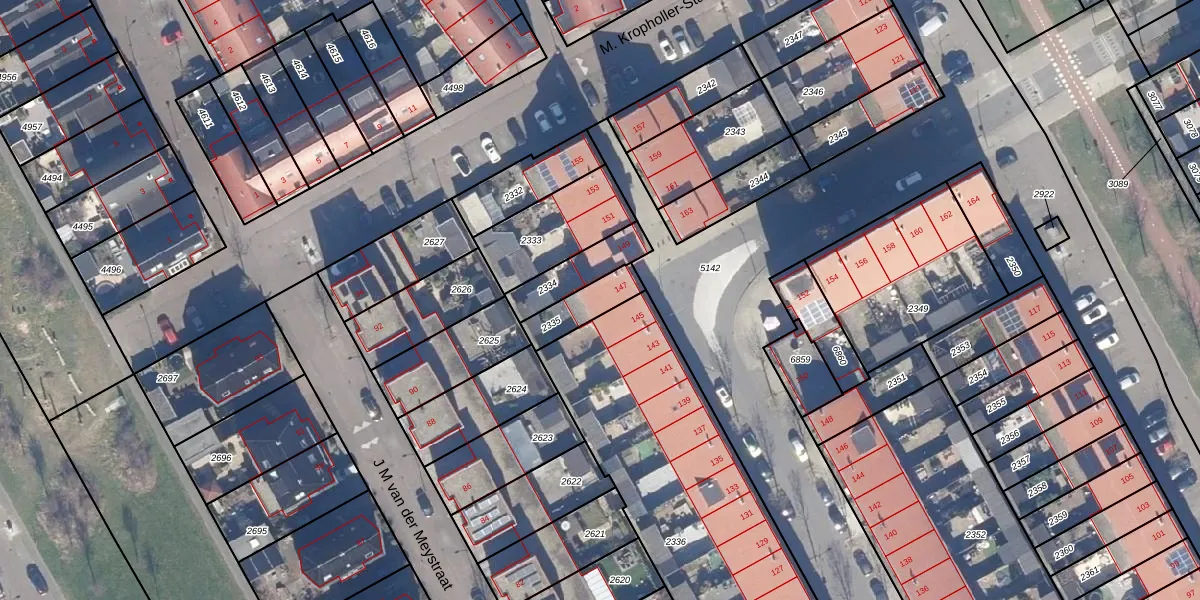 Gebruik de zoekbalk of klik op een perceel voor informatie over de adressen binnen dit perceel.