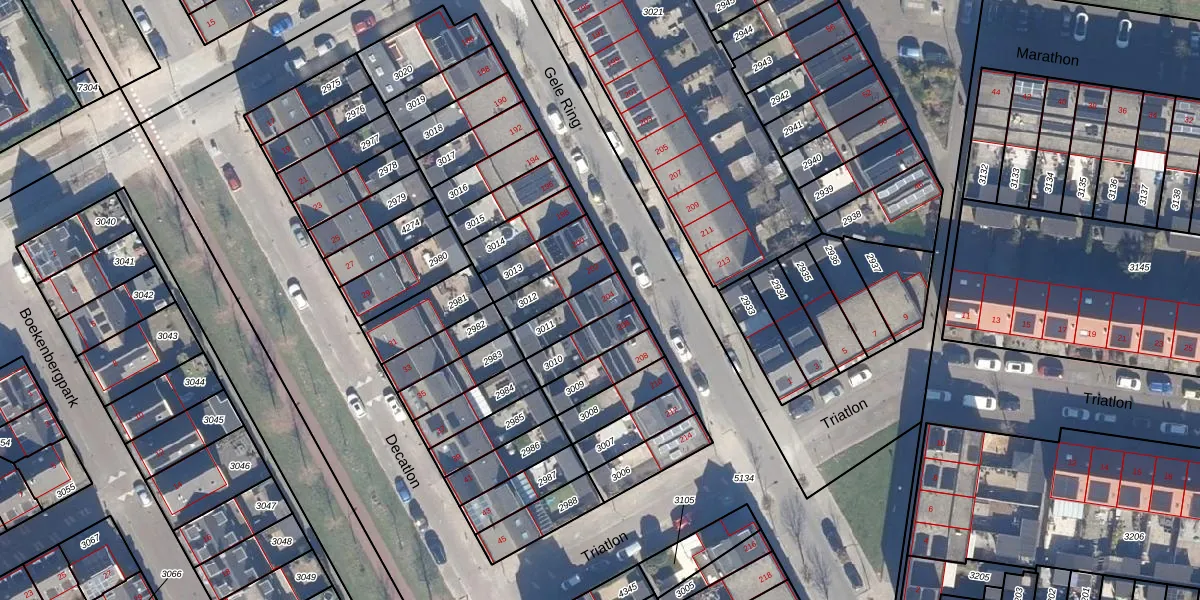 Gebruik de zoekbalk of klik op een perceel voor informatie over de adressen binnen dit perceel.