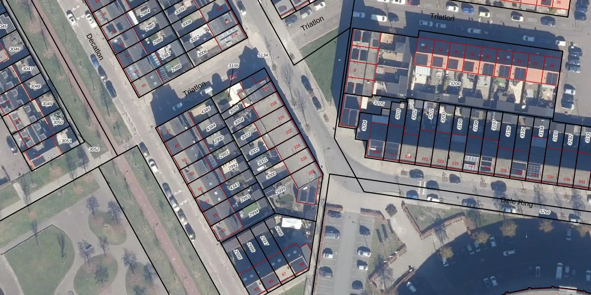 Gebruik de zoekbalk of klik op een perceel voor informatie over de adressen binnen dit perceel.