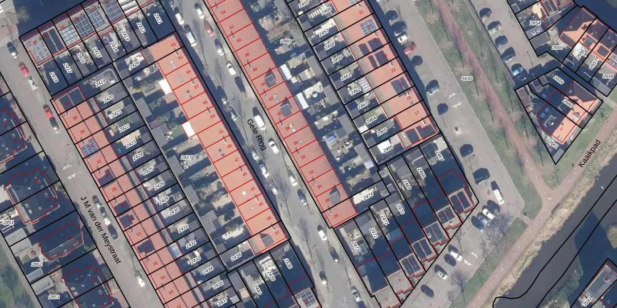 Het perceel waarop Gele Ring 34 staat heeft een oppervlakte van 2137 m². Dit is een zeer groot perceel. De perceeloppervlakte wordt geregistreerd door het Kadaster. Gedetailleerde informatie over de maten van dit perceel kunt u vinden in het rapport Kadastrale kaart met maatvoering van Gele Ring 34.